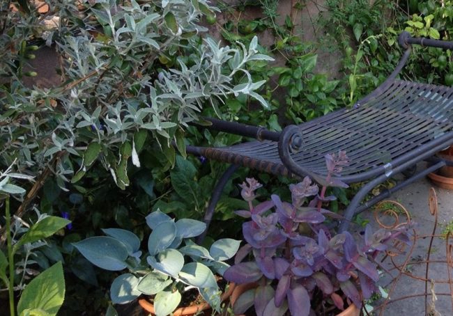 A rural garden over two levels. The lower courtyard has a deck and pergola set into bedrock with vines twining up and across the beams. The upper garden is traditional, with a lawn, flowering shrubs, grasses and perennials. Both elements are linked by a slope planted with a wilder, more natural approach. The garden was…